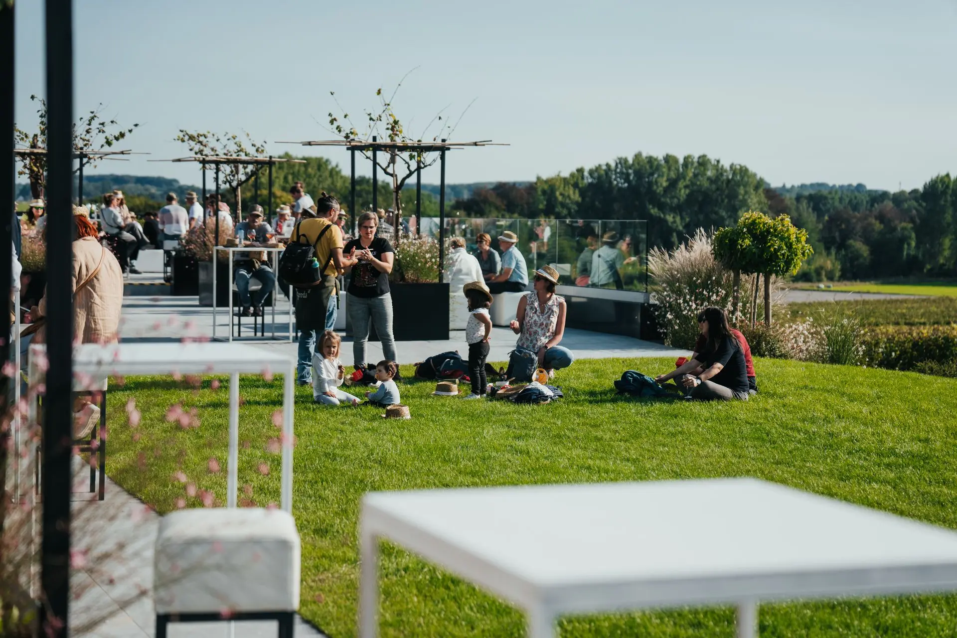 Terrassen met uitzicht over de wijngaarden